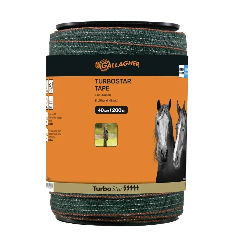 Besonders solides TurboStar- Breitband für feste Pferdezäune von mehr als 500 Metern Länge. Besonders stabil durch verstärkten, leitfähigen Rand und perfekte Sichtbarkeit!