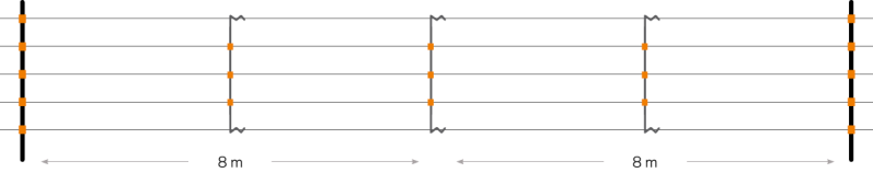 Mit dem Isolierten Line Post installieren Sie Ihren permanenten Elektrozaun im Handumdrehen. Unser Test zeigt, dass die Installation eines herkömmlichen Holzpfostens bis zu fünfmal länger dauert (1 Minute) als die des Isolierten Line Posts (12 Sekunden). Außerdem können Sie bis zu viermal so viele Pfähle unter dem Arm tragen, d. h. 16 Isolierte Line Posts im Vergleich zu 4 Holzpfosten. So können Sie Ihren Zaun viel schneller und effizienter errichten.